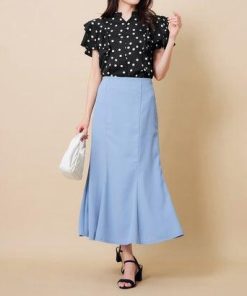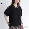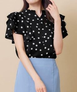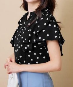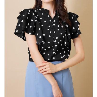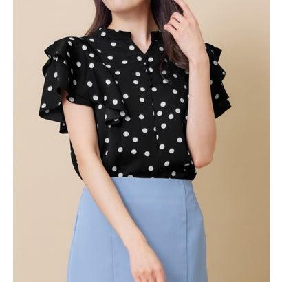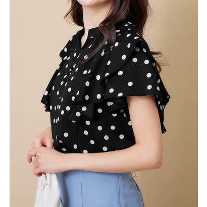 alotta アロッタ Alotta ドット柄フリルデザインブラウス (ブラック系)