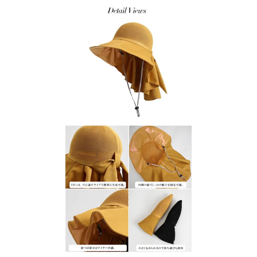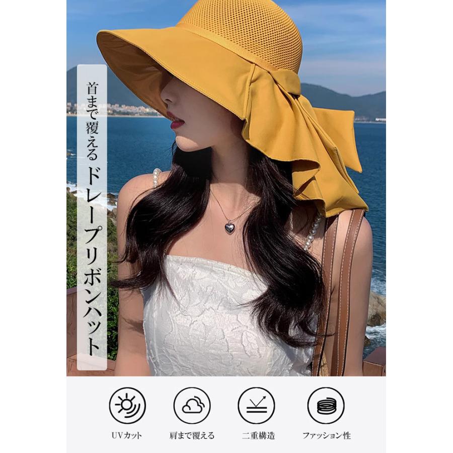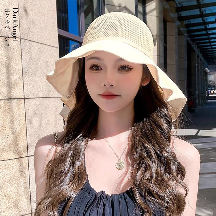 Dark Angel ドレープリボンハット レディース uv つば広 ハット uvカット 首まで リボンハット リボン 小顔 おしゃれ 紫外線対策 夏 ママ 折りたたみ 通気性 熱中症対策