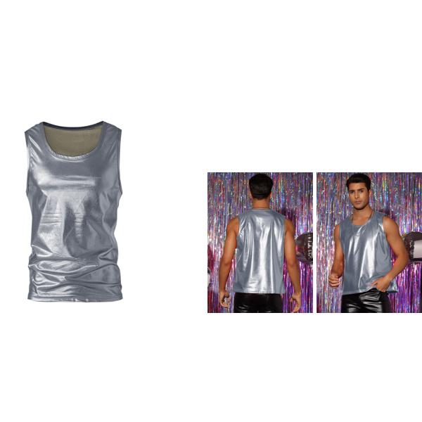 Lars Amadeus トップス ベスト ノースリーブ メタリック ラウンドネック 光沢のある パーティー スポーツ ライブ メンズ グレー S