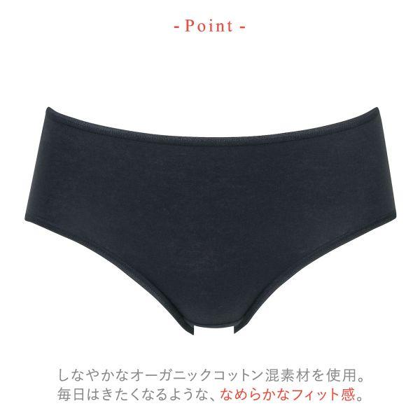 毎日素肌に直接つけるものだから、ショーツはやさしい上質なものにこだわりたい。【綿の贅沢オーガニック】なめらかな肌ざわりのショーツです。